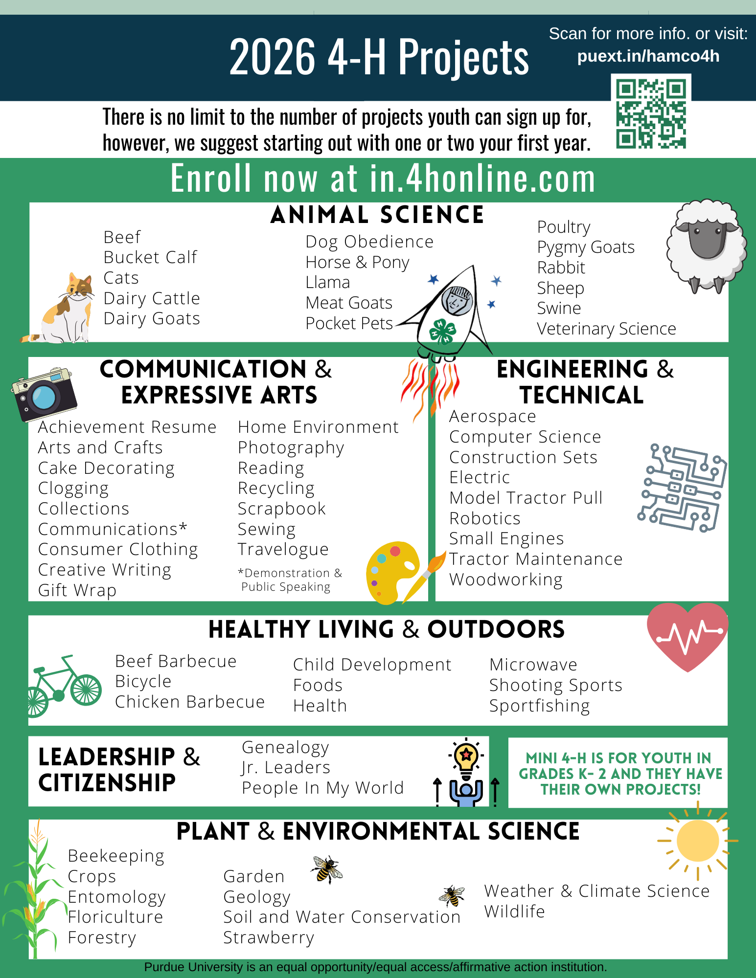 See the 2025 4-H Hamilton County Family Handbook for new member information!