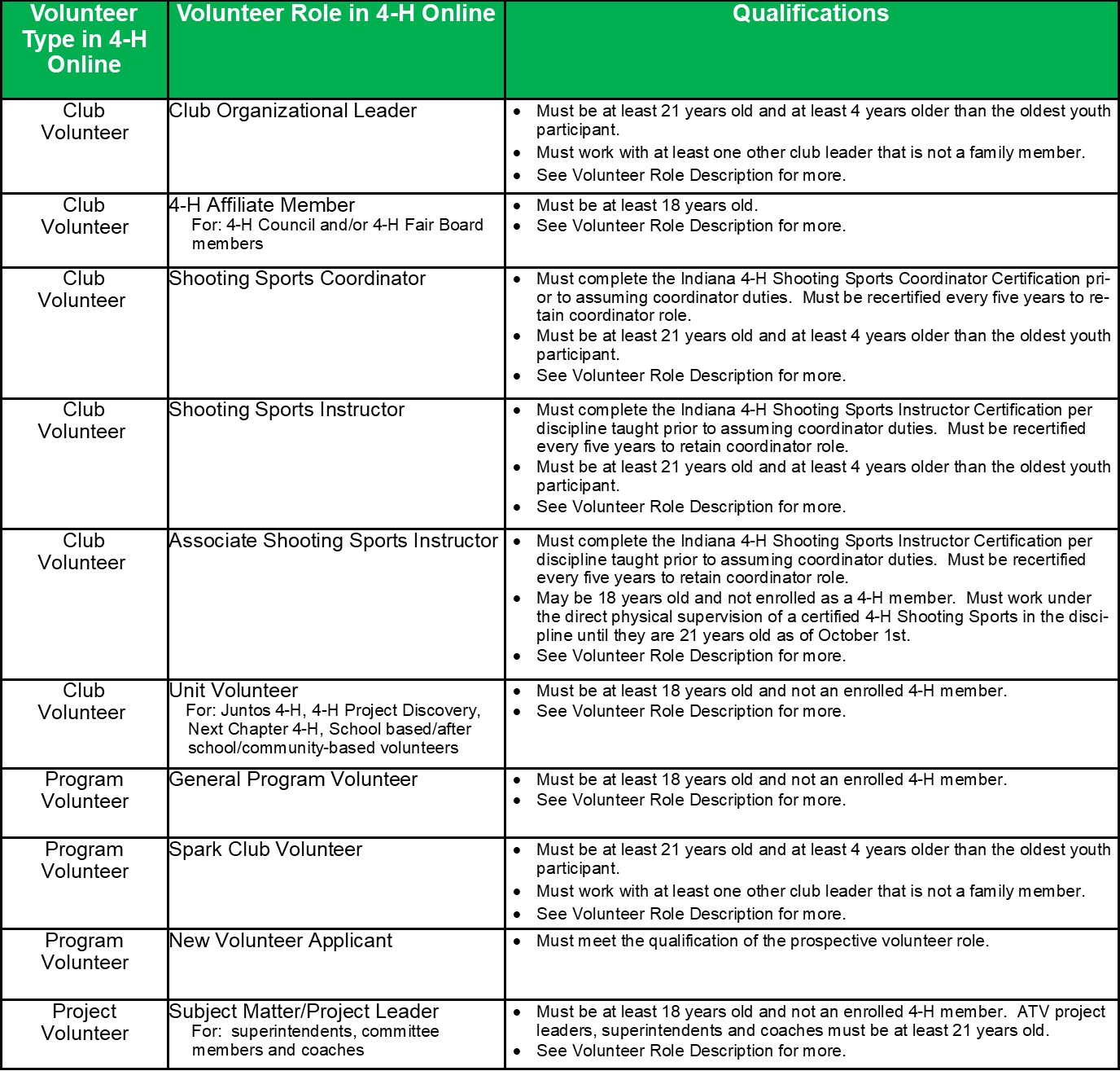 Volunteer Roles and Qualifications