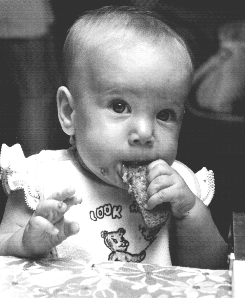 *Watch for the baby to start up-and-down chewing. Watch for her to move her tongue around. This means she is probably ready for food that takes more chewing. Try:
