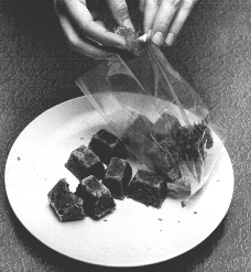 *Store the food in the freezer. Try putting the food in an ice cube tray. When it is hard, pop the "food cubes" out. Put them in a plastic freezer bag. Tie the bag tightly. Write the date on the bag so you know how old it is. Write what kind of food it is, too.