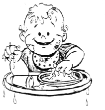When children spill or play with their food, keep calm. Your child is learning about how food feels. As the child gets older, he can help you clean up messes.