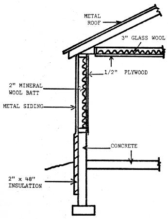 For a machine shed, shop or other building which is only occupied during the day, a collector without storage becomes more practical. No heat is required at night and the temperatures in the area can be lowered to 50-55° for a working atmosphere. The heat losses are calculated in the same way as before. The number of degree days may be reduced since the inside temperature is 50-55° instead of 65°F. On this type of system a small auxiliary heater might be used along with the solar system. It could then take over whenever a below average day for radiation occurred.