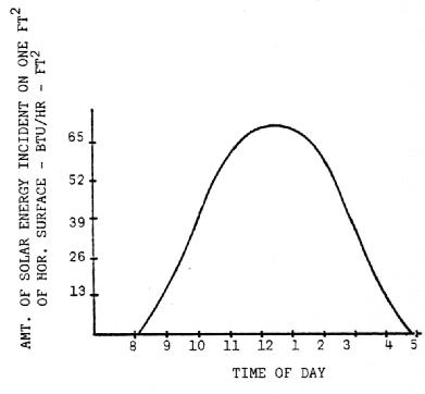 Incoming solar energy also fluctuates on an hour to hour basis. During the winter, the majority of solar energy is received from about 9:00 in the morning until about 3:30 in the afternoon. Within this time period, the rate increases to a high value at noon and then decreases again. This is shown graphically in Figure 8.