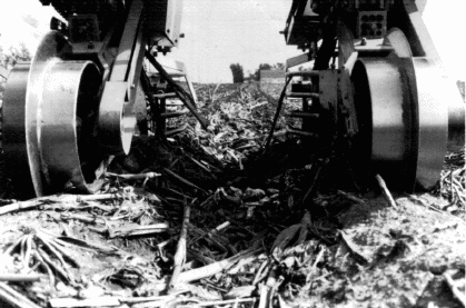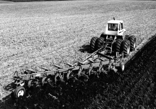 As used in this bulletin, deep disc harrowing (6 in. or more) refers to primary tillage with large diameter blades. The amount of residue left on the surface is similar to that left after chisel plowing. Like chisel plowing there is considerable variation in the amount of surface residue remaining due to the blade size and spacing, weight of the implement and angle of the disc gang, as well as soil conditions. Continuous use of the disc harrow at the same depth year after year may result in the formation of a tillage pan that restricts rooting and water movement.