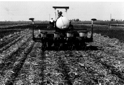 After moldboard plowing and secondary tillage, there is little crop residue left after planting. This system allows maximum flexibility for incorporating fertilizers and pesticides, and provides a residue-free surface for herbicide-soil contact and a chance to cultivate early if needed.