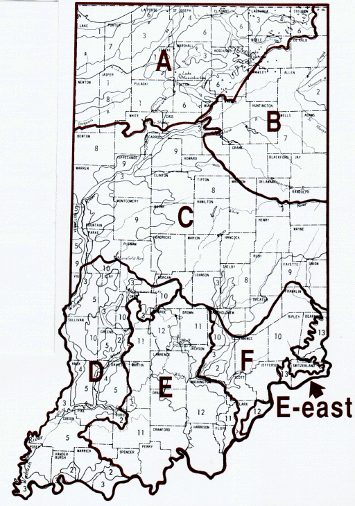 Figure 1 shows the location of six soil resource areas in Indiana. Each soil resource area contains a variety of soils with various drainage and particle size characteristics but these soils occur on landscapes in a reasonably predictable manner.