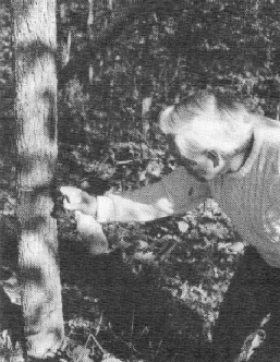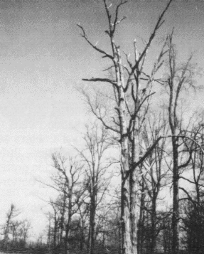 Since living cavity trees are more scarce than dead trees, they should be given preference when choosing trees to meet cavity objectives. Snag trees result from natural mortality and TSI operations. Thus, when selecting trees to remain as cavity trees, select species with long life spans (favor white oak species over black oak species) that attain large diameters. Also, choose trees with healthy crowns that are likely to remain in the stand for a long time. If a sufficient number of existing cavity trees are not available, select large trees which show cavity potential. Over mature trees or trees with woodpecker holes, physical damage, fungal infections, dead portions, or trees stressed by mechanical damage or disease are all good candidates. When deadening trees to create snags, only deaden trees larger than 19 inches DBH after your requirements for living trees in that size class have been met.