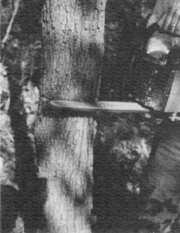 When a tree marked for removal is not needed for firewood, fenceposts, or marketable products, girdling the tree with a chain saw and injecting the trunk with herbicide will remove the tree from competition with neighboring crop trees, save labor and time, and create snags. Avoiding deep girdling allows snags to stand longer. After the tree falls, it may serve as a drumming log for ruffed grouse. In addition, the decaying wood may provide habitat for over 65 wildlife species including salamanders, snakes, song birds, and small mammals. A fallen tree returns nutrients to the soil as it decays.