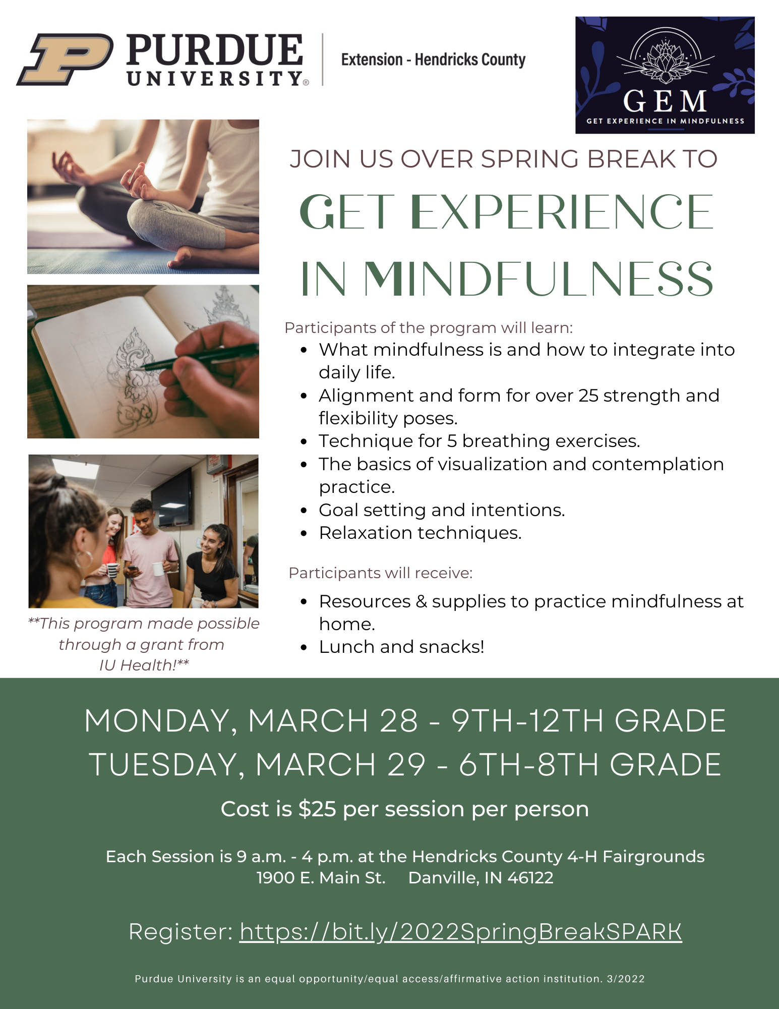 Relax and enjoy this program that places an emphasis on stress management taught through practical and interactive mindfulness-based activities.