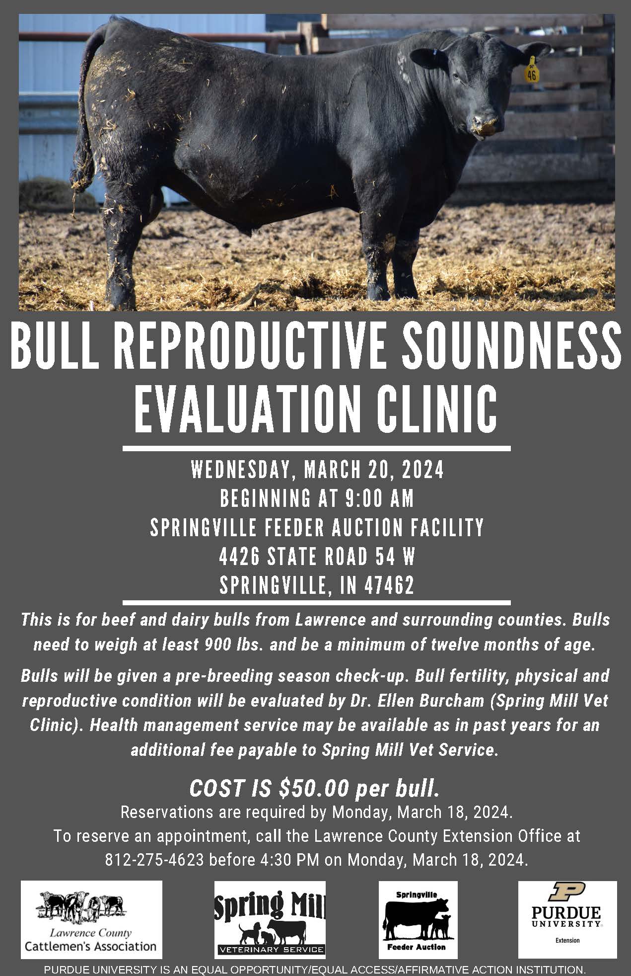 To reserve an appointment, call the Lawrence County Extension Office at 812-275-4623 before 4:30 PM on Monday, March 18, 2024.