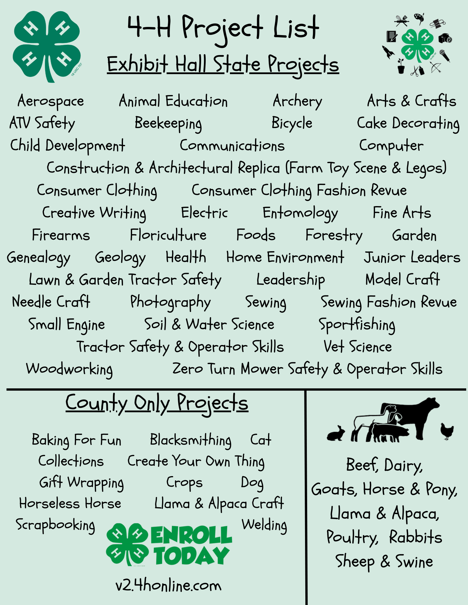 What are the Mini 4-H Projects available? When enrolling, choose 2 projects