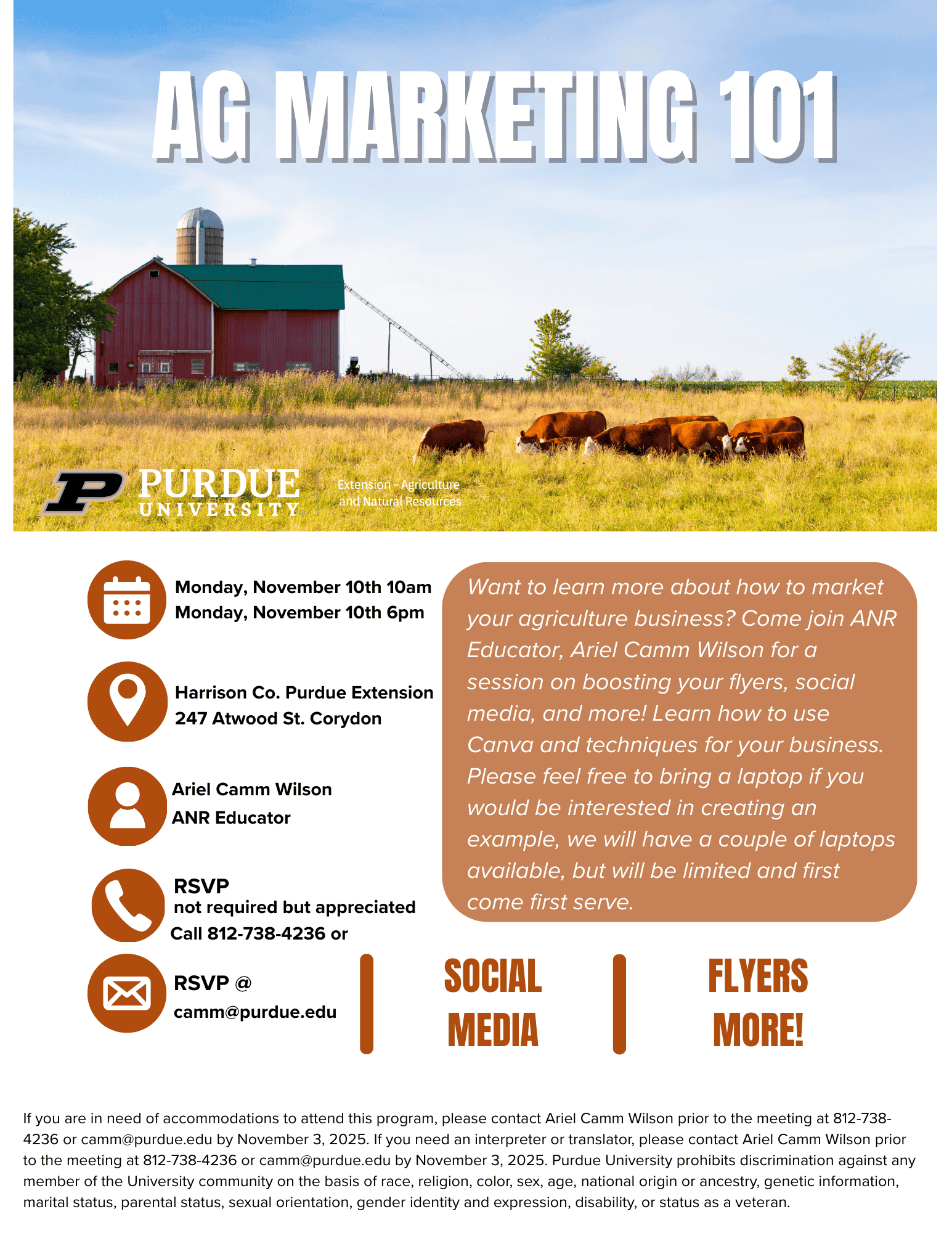 If you have any questions or would like to chat about the programs we offer feel free to call the Extension Office at 812-738-4236 or email: camm@purdue.edu
