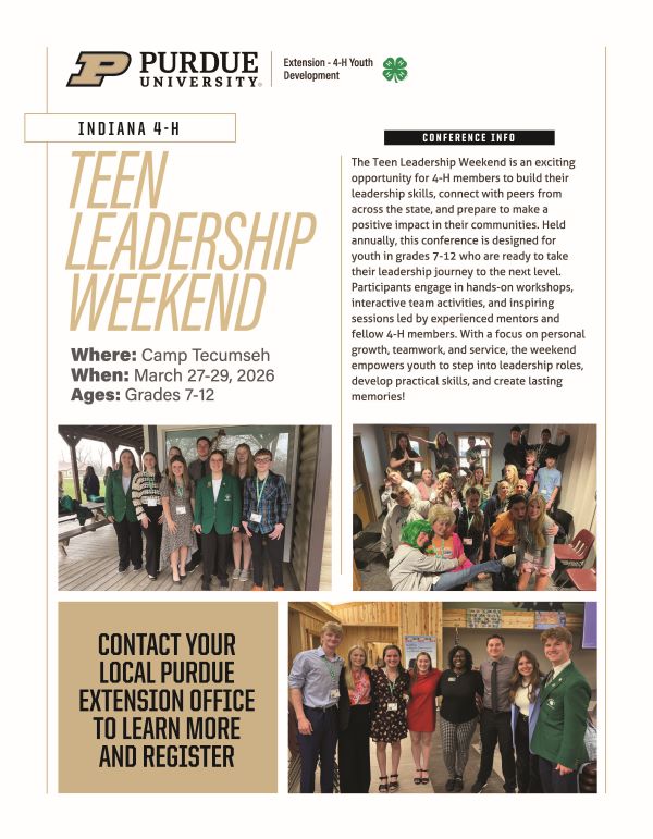 Indiana 4-H Mission: The Indiana 4-H Youth Development mission is to provide real-life educational opportunities that develop young people who will have a positive impact in their communities and the world.