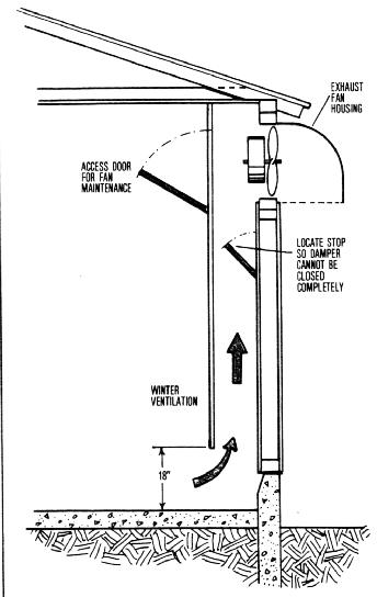 Ventilation is needed at all times in confinement livestock housing to provide oxygen, remove moisture and odors, prevent heat buildup and dilute air-contained disease organisms. Such ventilation is accomplished by either natural or mechanical means.