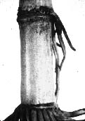 FIG. 4 The tiny black dots (pycnidia) clustered at the nodes and beneath the stalk epidermis suggest Diplodia stalk rot. | ||||||||||||||