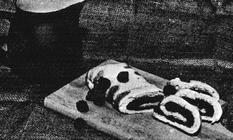 Add water by sprinkling it over the Mix. Stir with a fork to blend. Roll as for pastry into an oblong piece about 1/4 inch thick. Mix blackberries with sugar and flour. Spread them over the pastry to within an inch on all sides. Roll up like a jelly roll and tuck in the ends. Place on baking sheet. Bake in a moderate oven (375F) until lightly browned (about 35 minutes). Serve hot.