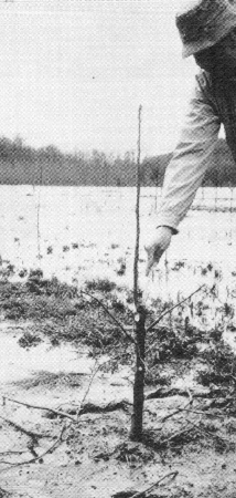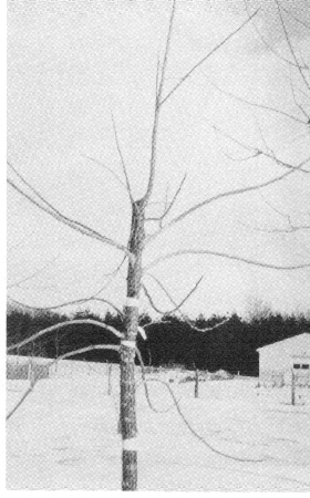 The following year, the undesirable leader is completely removed after the chosen leader has straightened (Figure 11). Taping should probably be attempted only when the chosen leader is nearly horizontal and little hope of its straightening using normal pruning techniques can be anticipated. Even so, 50 percent success is probably the maximum to be expected from this technique.