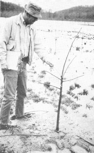 One theory argues for no pruning at all until the tree has developed a tall central stem. Knot-producing low branches on the main stem must then be pruned to allow the tree to develop high quality wood. It is often amazing how a small, crooked tree sometimes straightens without pruning. It is not so amazing, on the other hand, how often low forks, which limit the merchantable length of the tree to two to six feet, develop (Figure 1). All such forks can be avoided by the easy, properly-timed snip of the pruning shears.
