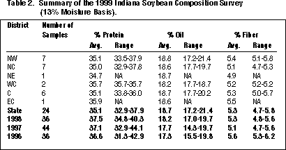 The results in Table 2 only give an indication of the composition values of soybeans across Indiana. Conditions during the growing season, variety selection, and soil fertility significantly affect intrinsic values, such as protein, oil, and fiber. Producers need to have their own samples analyzed to get more precise values.