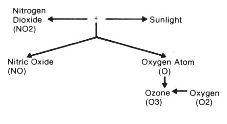 Air pollution can cause significant damage on leaves of field-grown watermelons (Citrullus lanatus [Thunb.] Matsum and Nakai) and muskmelons (Cucumis melo var. reticulatus). The air pollution-induced injury on melons observed in several midwestern and eastern states is principally caused by ozone. Ozone is produced in air during the daylight hours from chemicals released from automobile exhausts and the combustion of fossil fuels (oil and coal) (Figure 1). During the summer months, ozone concentrations in several regions of Indiana have been recorded at levels that could cause injury to crops susceptible to air pollutant injury. Other crops in which ozone injury has been observed in Indiana include potatoes, string beans, tobacco, soybeans, and squash.