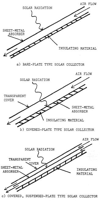 In most collectors, insulation for the back of the collector is necessary to reduce the conduction heat loss (heat loss through the rear of the collector). The covers of type b and c also reduce radiation heat loss from the front of the collector.