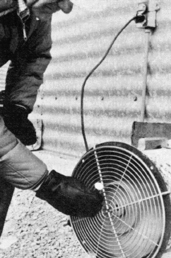 Once the grain has been cooled, run the aeration fan to smell the exhaust air for bad odors coming from grain that might be going out of condition and to dry condensation in the fan motor. When you run the fan, pick a clear, crisp day when the air and the grain are at about the same temperature. Because this day may not always occur on your chosen, regular inspection day, it may not be feasible to always run the fan when you check grain condition.
