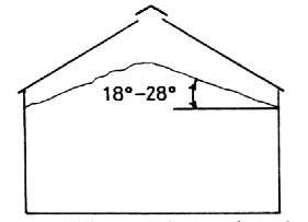 Most dry grain peaks at an angle of 18-28 degrees for center filling without a distributor. Estimate the volume of corn in bushels stored in the peak of a round bin with Eq 1. Eq 1 is based on a filling angle of 23 degrees. Capacities for other grains will vary, but Eq 1 provides a suitable estimate.