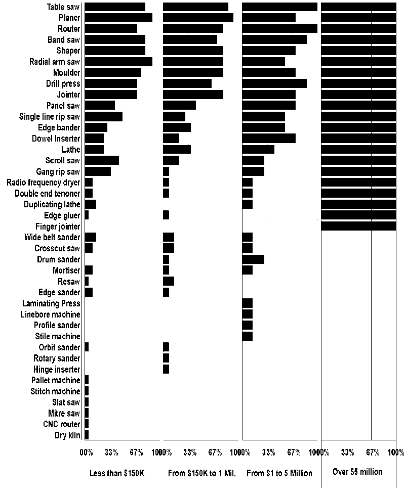 Figure 1. Average machine usage percentage in kitchen cabinet industry