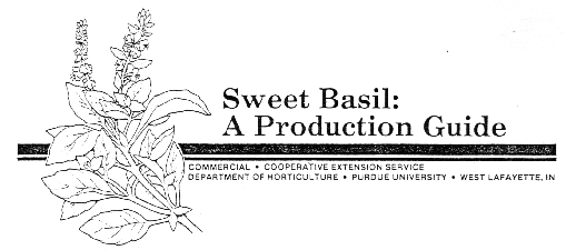 Basil can be direct seeded or transplanted to the field in late spring after all danger of frost has passed. The germination rate of the seed should be 80-95%, and seed should not be planted if the germination percentage is less than 70%. If the soil is heavy, the seed should be covered with an anticrustant. The soil should be kept moist to hasten germination and to ensure a more uniform plant stand. The seed is relatively small, and a good friable, well-tilled and uniform seedbed is required for optimum plant establishment. Seeds should be planted only 1/8 - 1/4 inch deep. Plant emergence should occur between 8-14 days. To encourage lateral branching and growth, the tops of transplants can be trimmed prior to field planting, when they are about 6 inches tall.