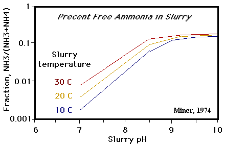 manure pH and temperature. The higher the manure pH, the more ammonia is
