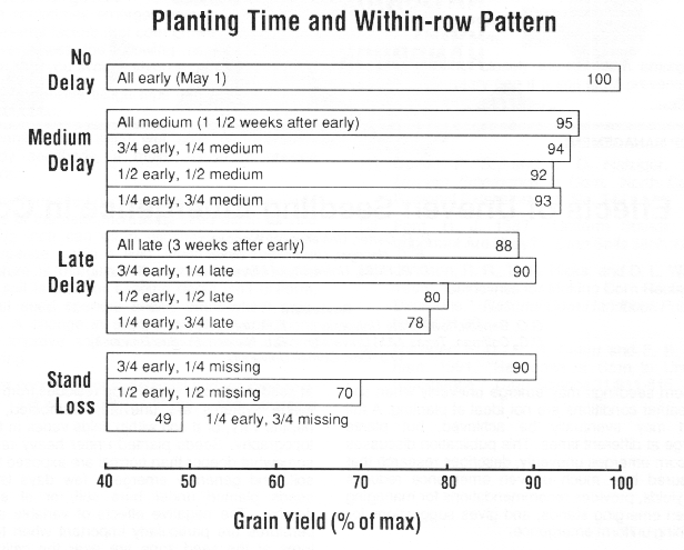 and delayed plantings within a row decreased yield by 6 to 8% (Fig.