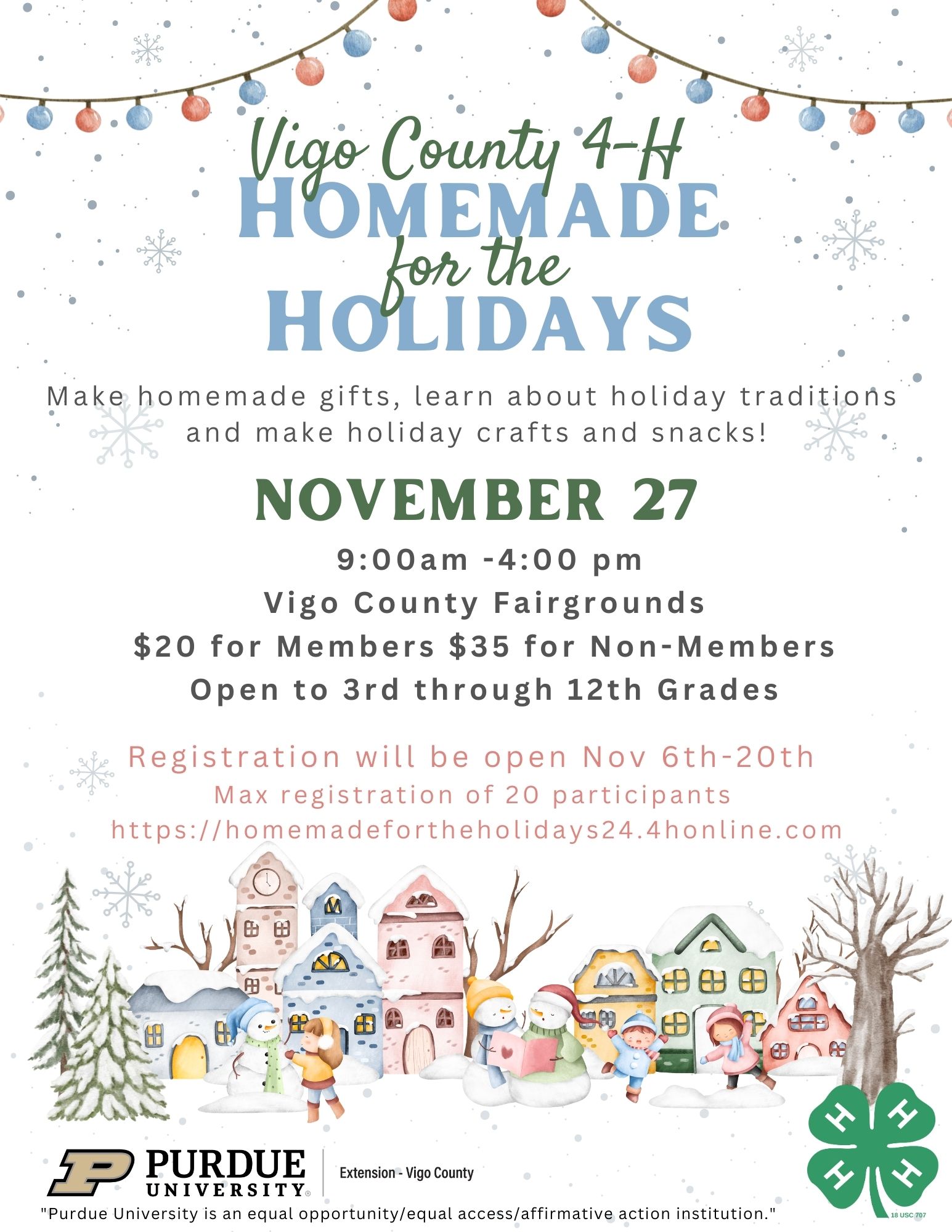 Register for the Homemade for the Holidays Spark Club! Registration begins 11/6 and closes the 20th. Participants are limited to 20.